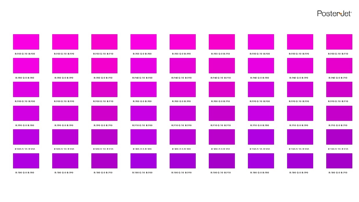 Der neue PosterJet Swatchbook Generator ist ein mächtiges Werkzeug, mit dem unterschiedliche Musterbücher aus frei definierbaren Farbwerten erzeugt und gedruckt werden können. Diese neue Funktion unterstützt die Farbräume RGB, CMYK und Lab und wird direkt aus dem PosterJet Client heraus gestartet (Menü „Werkzeuge“). Eine beliebige Referenzfarbe lässt sich hierbei schrittweise und stufenlos in alle Achsen des Farbmodells transformieren. Das Ergebnis ist jeweils ein Druckbogen mit verschiedenen Variationen der Referenzfarbe, wobei jede Variation mit den ihr zu Grunde liegenden Werten beschriftet ist.